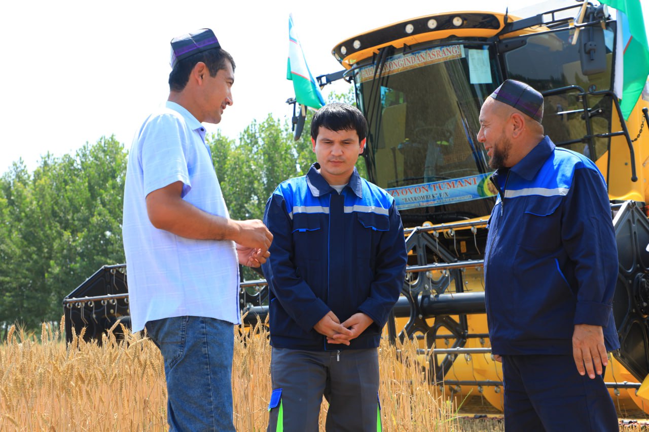 Tadbir ishtirokchilari dastlab “Xonobod” MMTP hududida joylashgan “Xonobod g‘alabasi” fermer xo‘jaligi dala maydonida pishib yetilgan boshoqli don hosili ko‘zdan kechirishdi.
