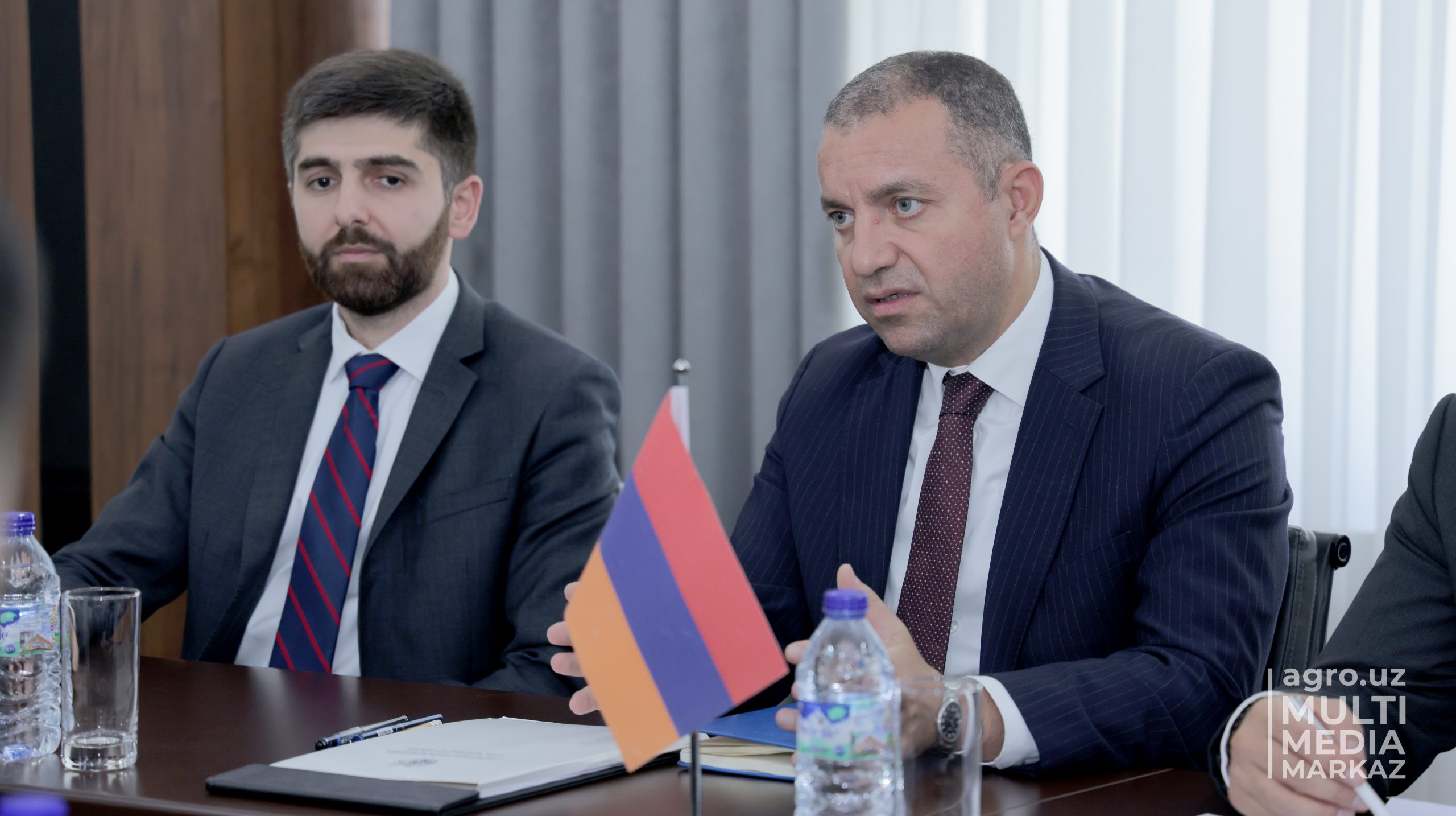 Uchrashuvda O‘zbekiston va Armaniston o‘rtasidagi o‘zaro hamkorlikning ko‘plab nuqtalariga ega agrosanoat majmuasi tarmog‘i va qishloq xo‘jaligida foydalanilmagan imkoniyatlarni ishga solish masalalari muhokama qilindi.