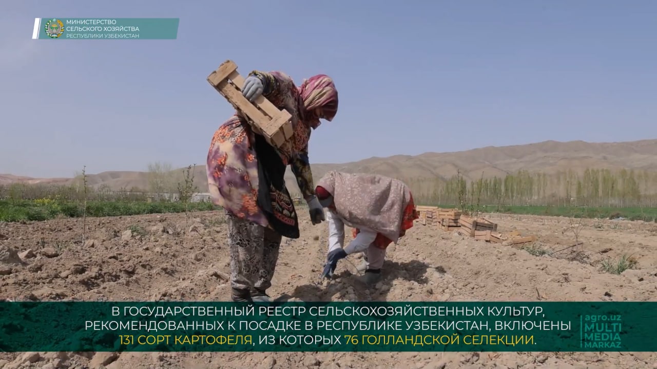 В Государственный реестр сельскохозяйственных культур, рекомендованных к посадке в Республике Узбекистан, включены 131 сорт картофеля, из которых 76 голландской селекции. Такие сорта картофеля, как «Аризона», «Арнова», «Аринда», «Зафира», «Кондор», «Констанс», «Марфона», «Маркиз», «Пикассо», «Родео», «Роко», «Романо», «Синьора», «Эволюшн» и другие сажаются по всей республике на больших площадях.