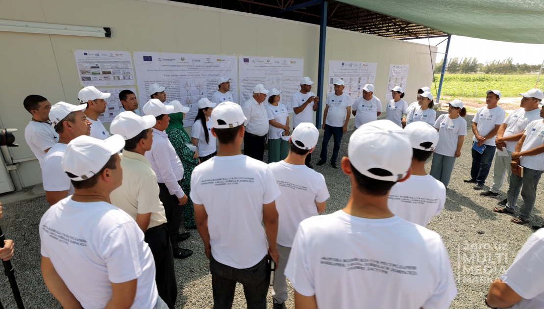 Затем участники перешли к практическим занятиям, которые проходили в полевых условиях. Здесь были обсуждены такие вопросы, как внедрение водосберегающих технологий орошения, количество воды, необходимое для полива сельскохозяйственных культур в период вегетации, прогнозирование роста и распространения вредителей в посевах, а также подготовка земель для выращивания вторичных культур и подбор вегетативных, выращиваемых из семян засухоустойчивых сортов культур, и стратификация семян.