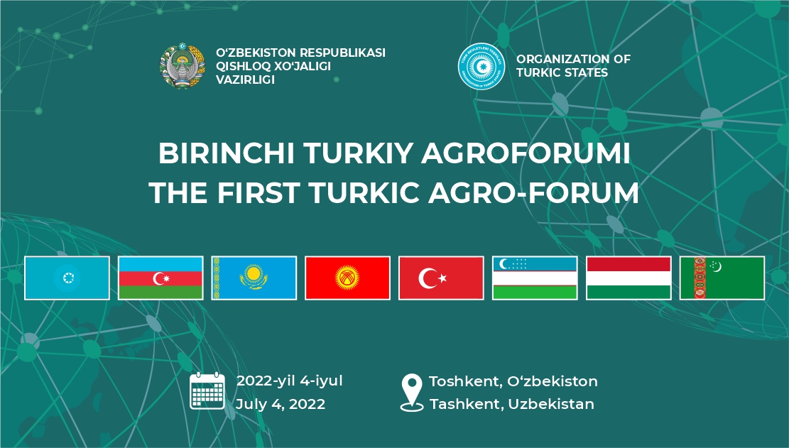 🔹2022-yil 4-iyul kuni soat 09:30 da Toshkent shahrining “HYATT REGENCY TASHKENT” mehmonxonasida Turkiy Davlatlar Tashkilotining “Turkiy Agroforumi” bo‘lib o‘tadi.