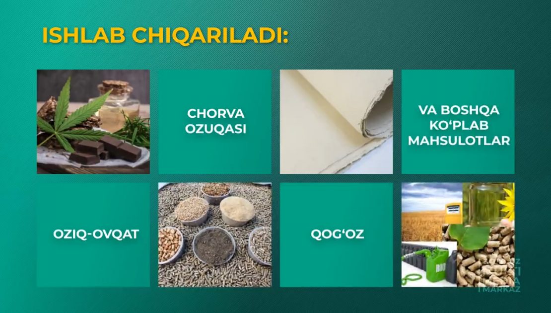 «В настоящее время в нашей стране технический каннабис выращивается как сельскохозяйственная культура. Из него получают масло и продукты волокна. Например, из технической конопли, выращенной на 1 га, можно получить 3-4 тонны волокна, 500 кг – 1 тонну масла, используемого в пищевой промышленности. Следует отметить, что другие проекты по выращиванию технической конопли в настоящее время изучаются Минсельхозом РУ. В частности, такой проект был лицензирован и запускается в Кызылтепинском районе Навоийской области. Также рассматриваются проекты для реализации в Бухарской и Самаркандской областях», – сказал начальник главного управления агротехнологий выращивания сельскохозяйственных культур Зафар Артыков.