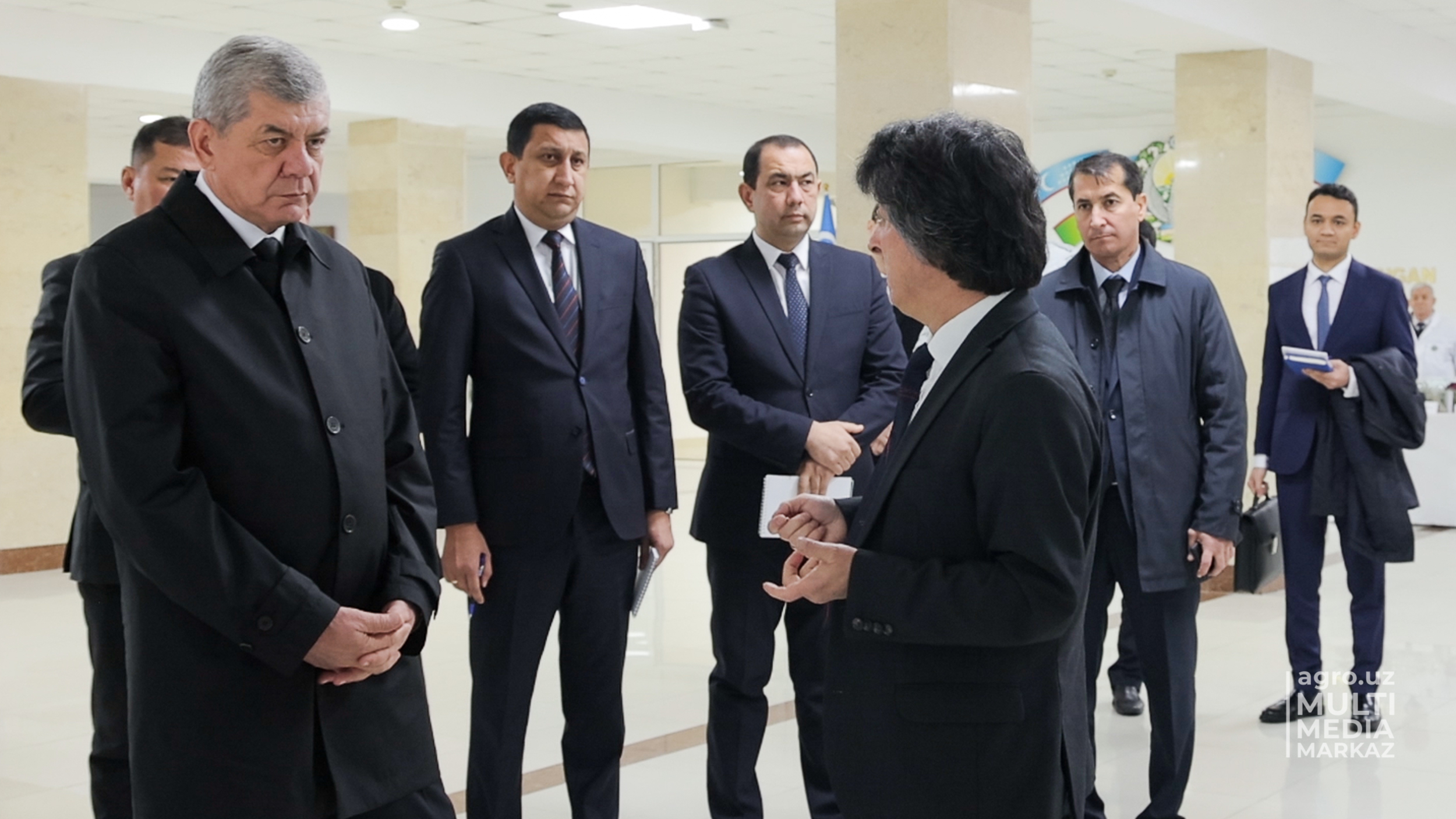 Для гостя в Минсельхозе при участии подведомственных организациях была организована специальная небольшая выставка. В ходе которой заместитель министра Алишер Тураев выступил с презентациями работ, проводимых в сфере сельского хозяйства.