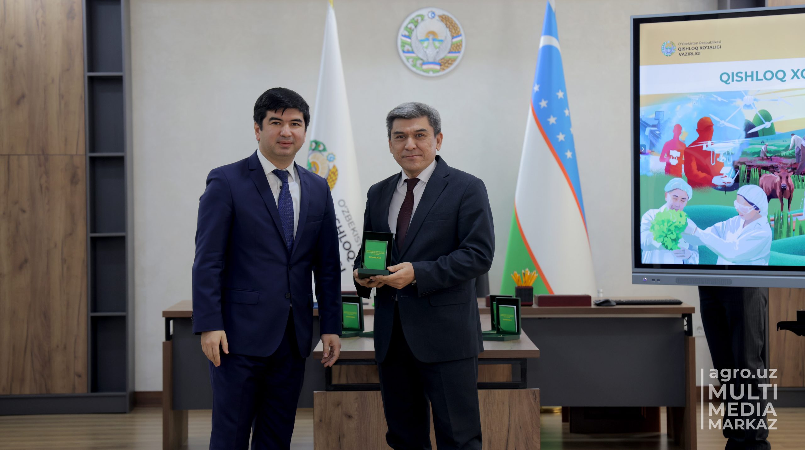 Shundan so‘ng vazirlikda samarali mehnat qilib kelayotgan xodimlarga “O‘zbekiston Respublikasi Qishloq xo‘jaligi fidoyisi” ko‘krak-nishoni va pul mukofotlari topshirildi.