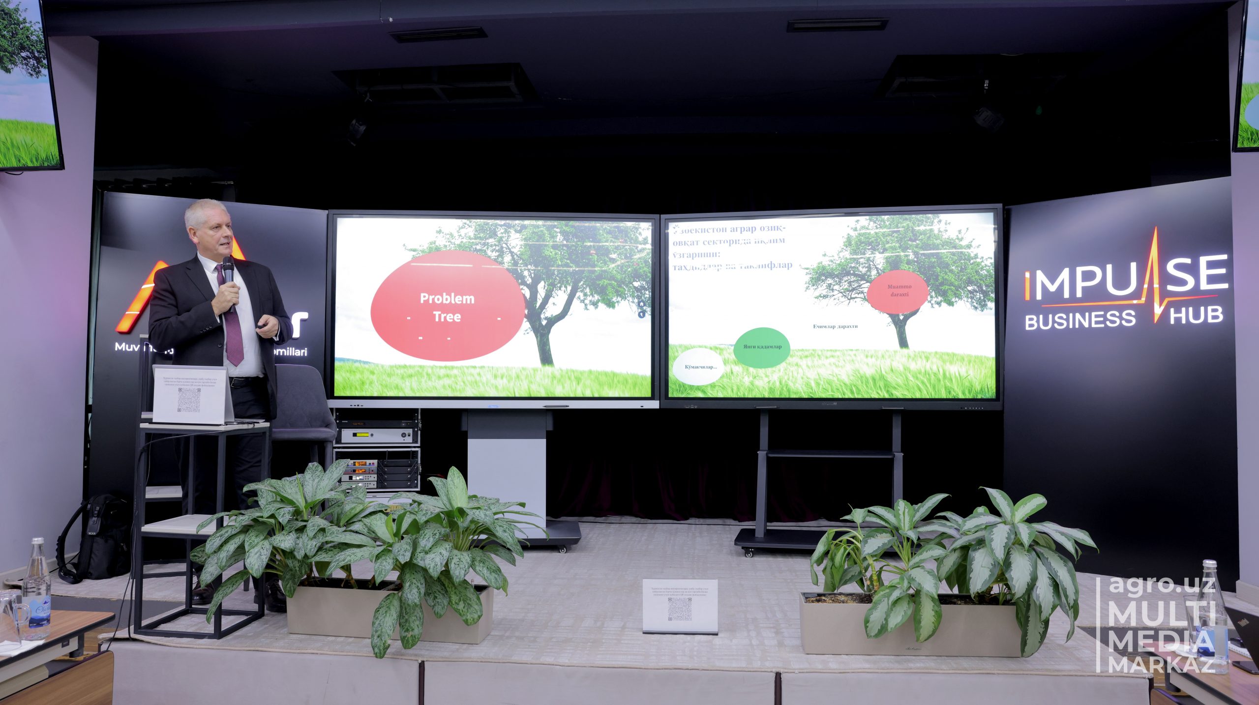 Tadbirning amaliy qismida YEI ASK dasturi rahbari Adrian Nil O‘zbekiston agrar sektoridagi iqlim tahdidlari va imkoniyatlarini “Muammolar va yechimlar daraxti” misolida aks ettirdi. Taqdimotga muvofiq, mamlakatda iqlim o‘zgarishi muammolari deb, ko‘riladigan issiqxona gazlarining ajralishi, chang shamollari, tuproq sho‘rlanishi aslida muammo emas, balki muammo yaratayotgan ta’sirlar bo‘lib, haqiqiy muammo agrar oziq-ovqat sektorida iqlim o‘zgarishiga qarshi integratsiyalashgan milliy kurash yo‘lga qo‘yilmaganidadir.