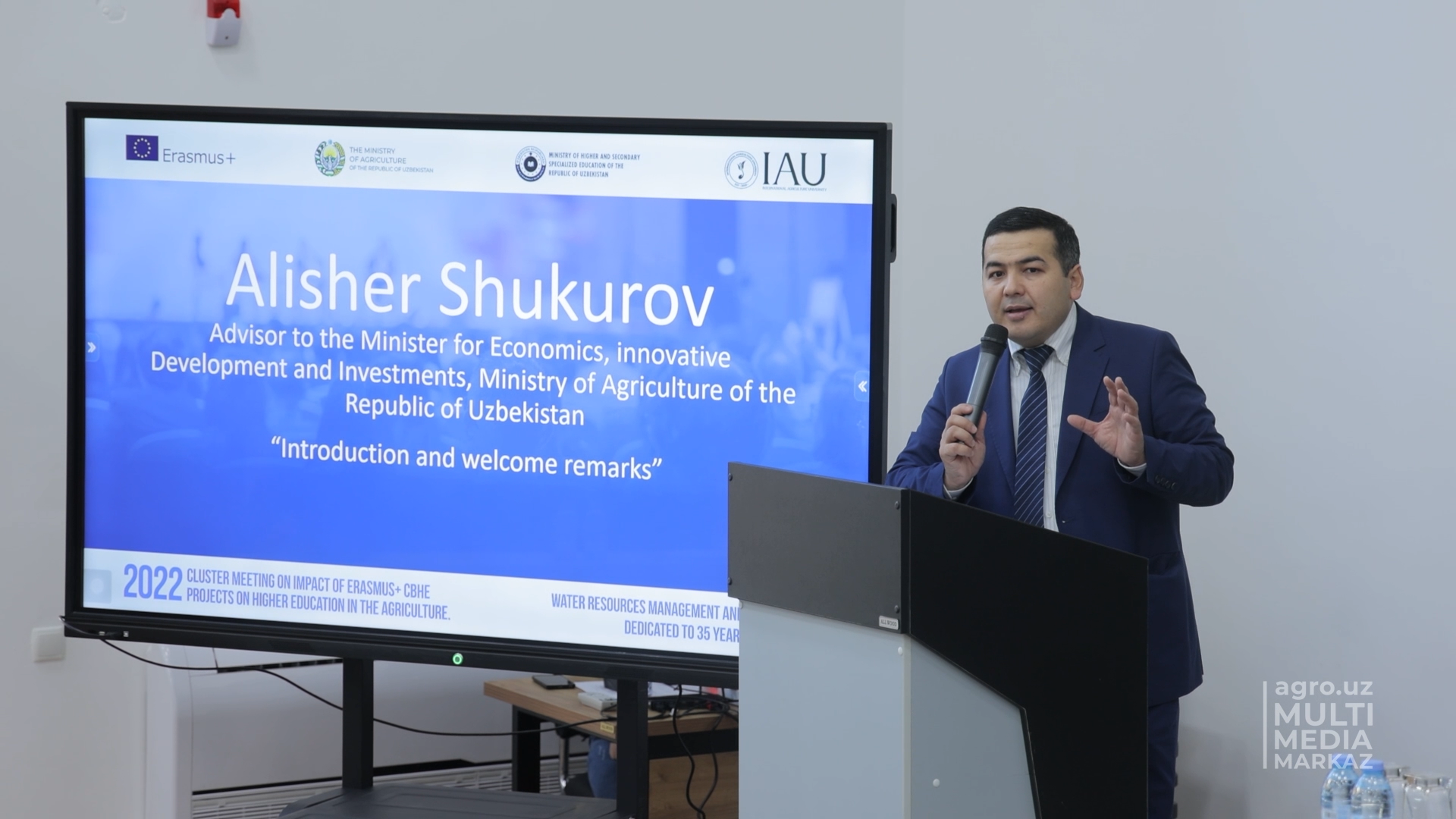 2022-yilning 26-dekabr kuni Xalqaro qishloq xo‘jaligi universitetida Erasmus+ dasturining 35 yilligiga bag‘ishlangan “Erasmus+ CBHE loyihalarining qishloq xo‘jaligi, suv resurslarini boshqarish va atrof-muhit sohasidagi oliy ta’limga ta’siri” mavzusida Klaster yig‘ilishi o’tkazildi.