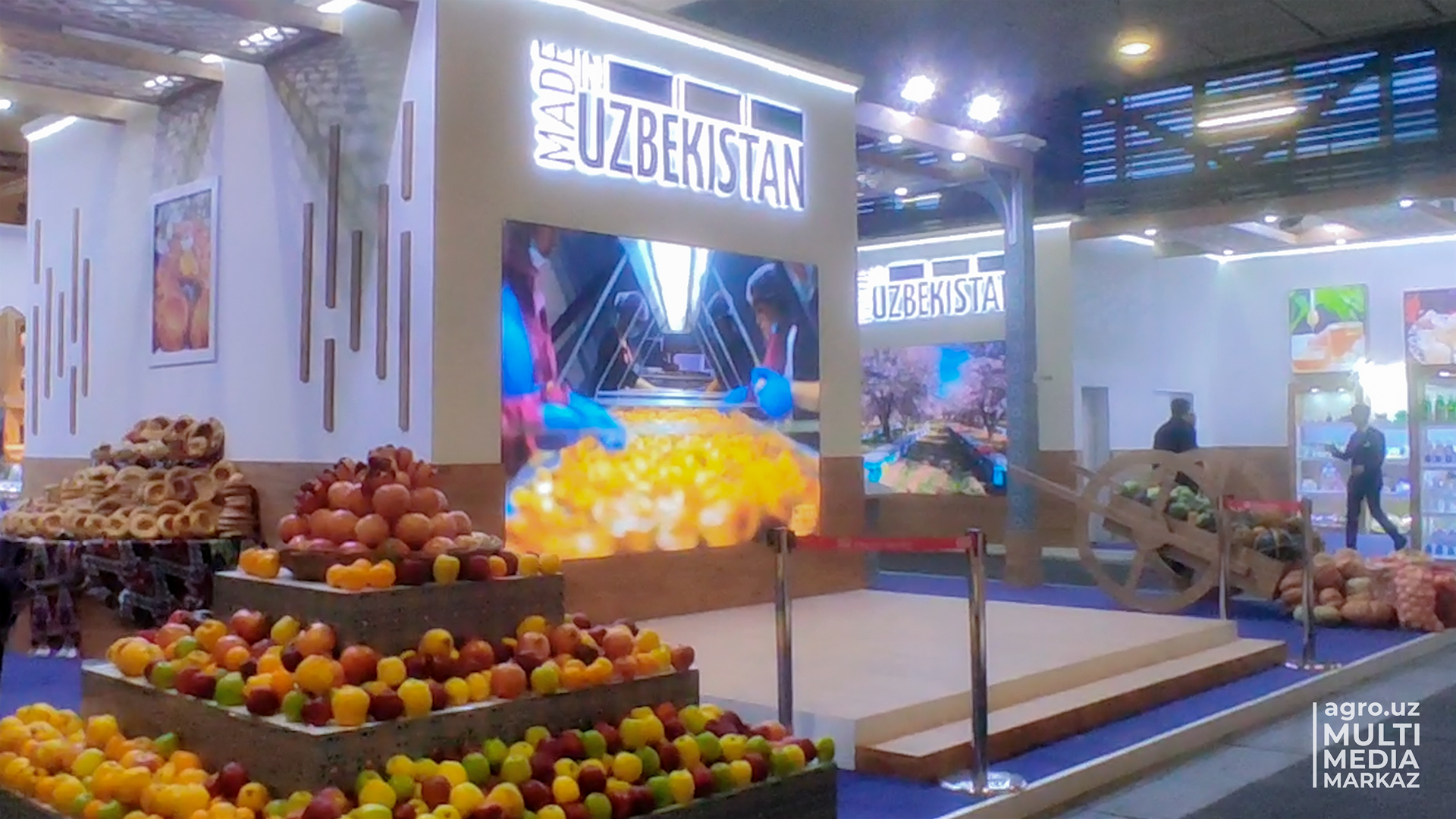 240 kvadrat metr maydonga joylashtirilgan O‘zbekiston stendida Qoraqalpog‘iston Respublikasi, mamlakatimiz viloyatlari va Toshkent shahridan 60 dan ortiq tadbirkorlarning milliy mahsulotlari namoyish etilmoqda. Jumladan: 227 turdagi qishloq xo‘jaligi va oziq-ovqat mahsulotlari – yangi va qayta ishlangan meva-sabzavotlar, qayta ishlangan sut va go‘sht mahsulotlari, yog‘ va yog‘ mahsulotlari, salqin ichimliklar, qandolat mahsulotlari, un va un mahsulotlari, margarin mahsulotlari va boshqalar o‘rin olgan. Bundan tashqari, o‘zbekistonlik oshpazlar har kuni milliy taomlarni (sho‘rva, somsa, non va boshqalar) tayyorlab, ko‘rgazma mehmonlarini siylashadi.