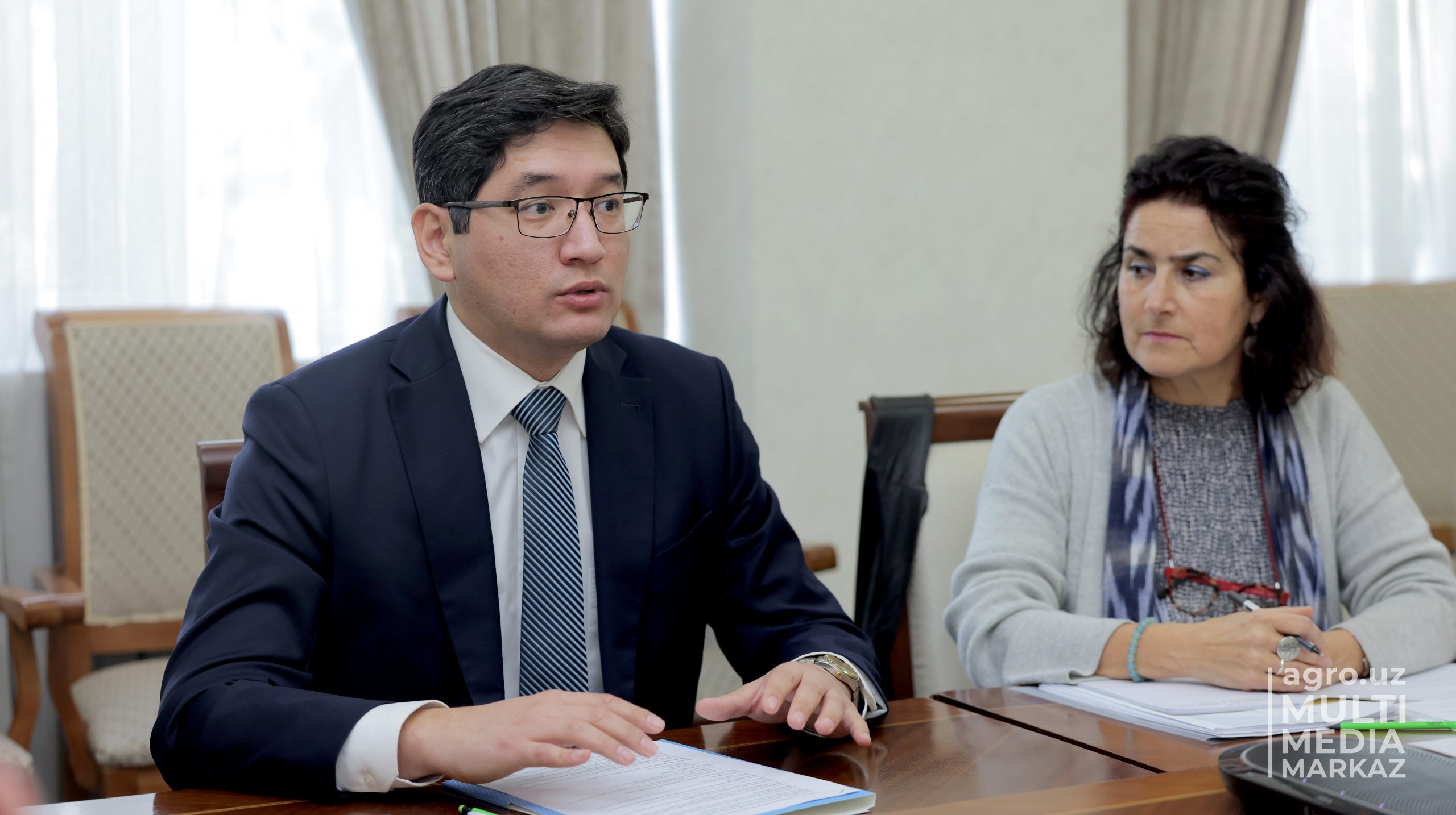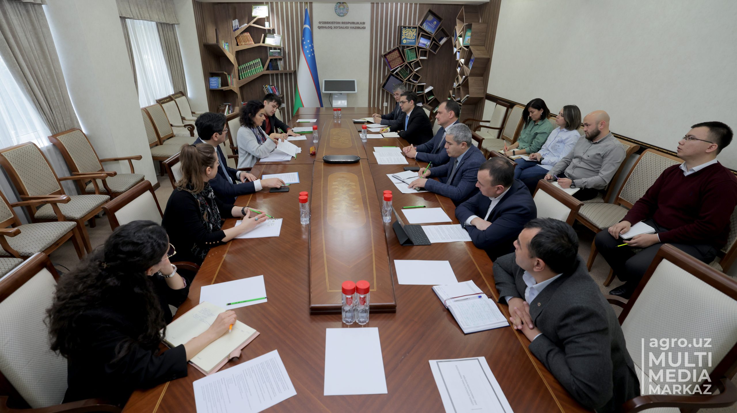 ответственных работников Министерства с Заместителем Представителя Продовольственной и сельскохозяйственной организации (ФАО) в Узбекистане Шерзодом Умаровым, сотрудником штаб-квартиры ФАО Софи Трэйнен, специалистом Регионального отделения ФАО для Европы и Центральной Азии Валентиной Юг.
