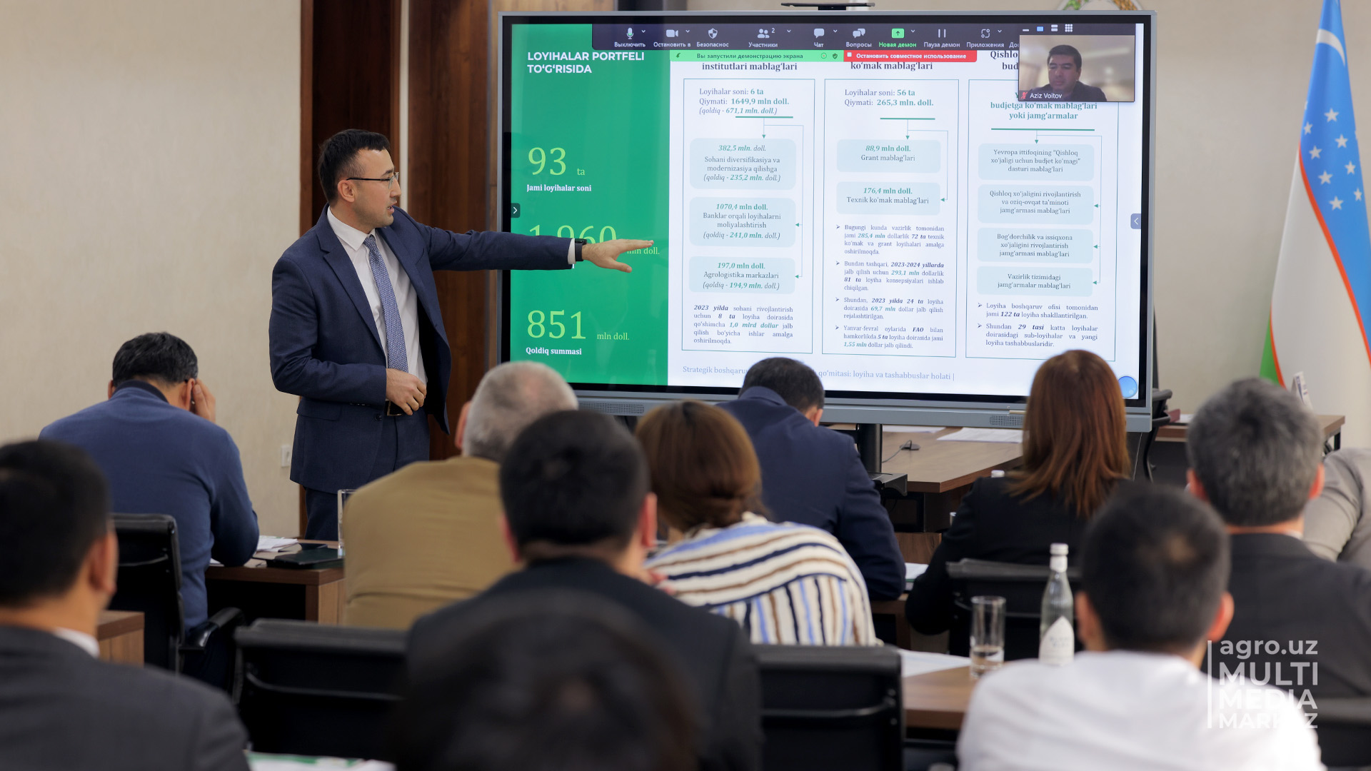 Tadbirda Qishloq xo‘jaligi strategiyasini 2020-2030-yillarda amalga oshirishni taʼminlash boshqarmasi tomonidan loyihalar boshqaruvini tashkil etish holati haqida atroflicha ma’lumot berildi.