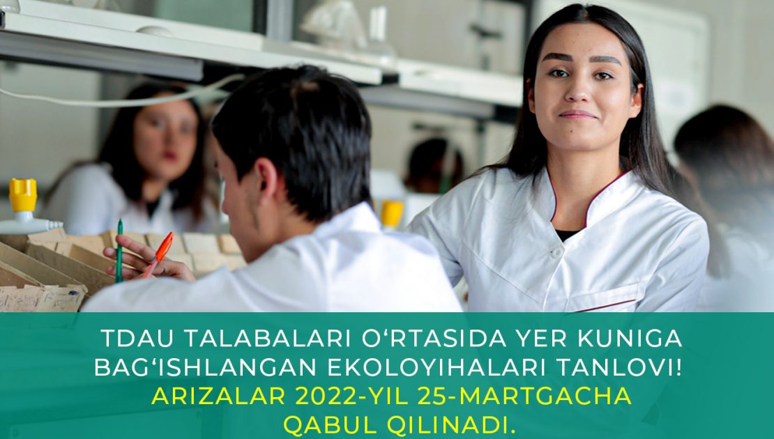 USAIDning agrobiznesni rivojlantirish loyihasi O‘zbekiston Respublikasi Qishloq xo‘jaligi vazirligi va Toshkent davlat agrar universiteti (TDAU) bilan hamkorlikda Butunjahon Yer kuniga bag‘ishlangan ekologik loyihalari tanlovini e’lon qildi.