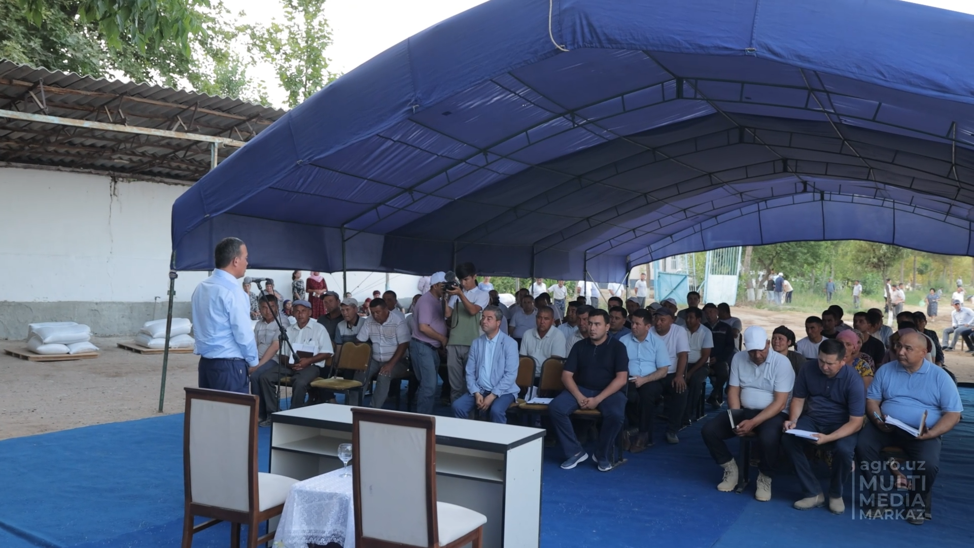 Shuningdek, takroriy ekin uchun 22 nafar ishsiz fuqaroga yer ajratildi. Viloyat hokimi mutasaddilar, fermer xo‘jaligi ishchilari, nuroniylar va fuqarolar bilan uchrashdi. Tadbirda kam ta’minlangan oilalar, ishsiz fuqarolarga g‘alladan bo‘shagan maydonlarda takroriy ekin ekib, daromad olish uchun 20 sotixdan yer ajratib berildi.