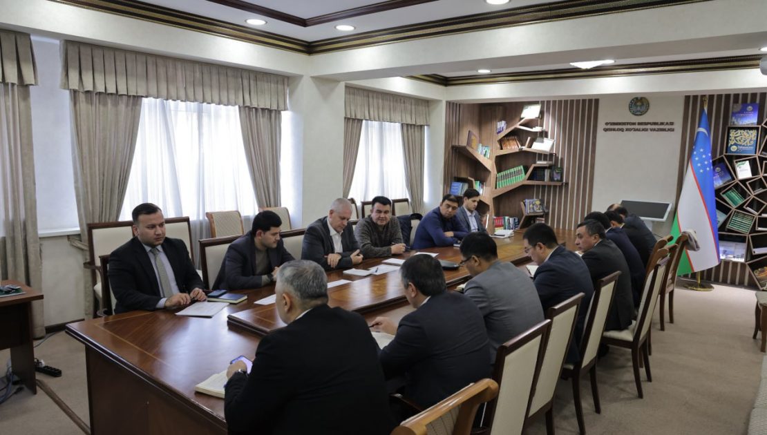 Joriy yilning 17-yanvar kuni Qishloq xo’jaligi vazirligida Qishloq xo’jaligi maxsulotlari yetishtirish departamenti rahbar xodimlari hamda Qishloq xo’jaligi vaziri maslahatchisi Adrian Nil o’rtasida bir qator masalalar, xususan, Qishloq xo’jaligini rivojlantirishning 2020-2030-yillarga mo’ljallangan strategiyasida belgilangan vazifalarni 2024-yilda amalga oshirish bo’yicha chora -tadbirlar dasturi muhokama qilindi.