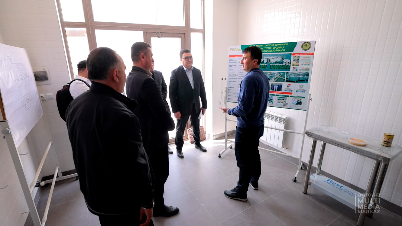 Так группа посетила новое производство «Тилло Домор» в Ургенчском районе, ознакомилась с текущими процессами и пообщалась с представителями предприятия, которое перерабатывает 20 тысяч тонн молока в год и производит 1 200 тысячи тонн сыра, 50 тонн сливочного масла и 30 видов молочной продукции. Министр поручил должностным лицам министерства принять необходимые меры для решения выявленных проблем и предложений.