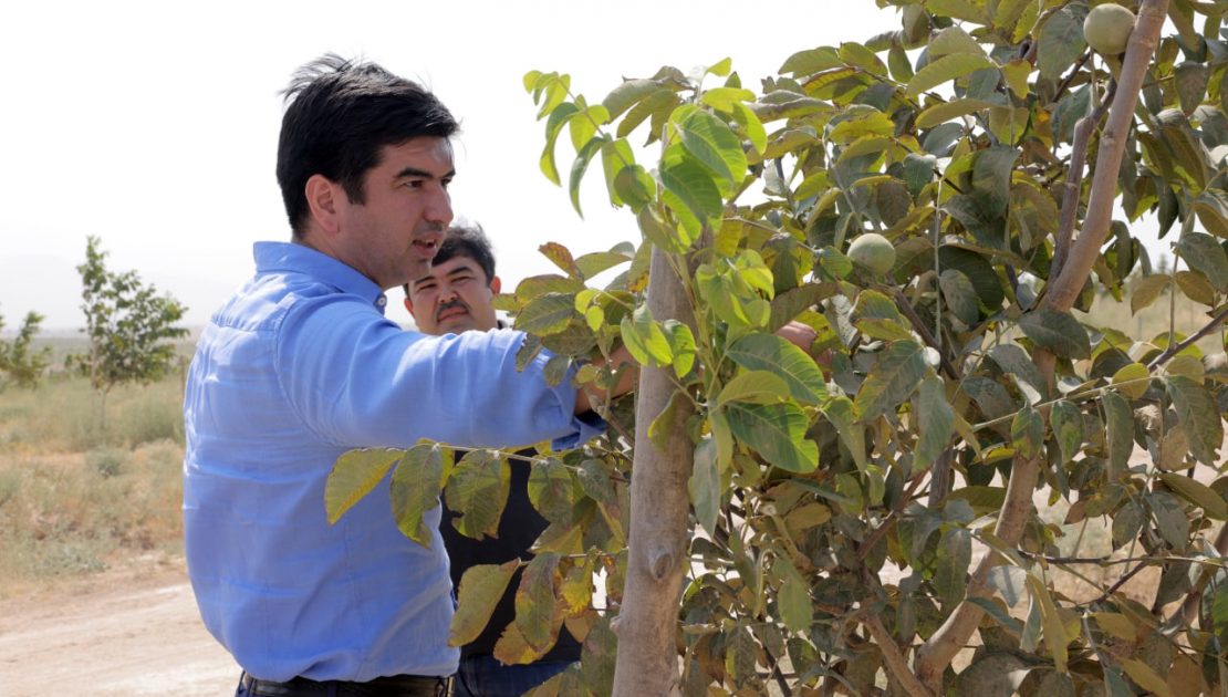 Первым пунктом визита министра стало предприятие АО «Агрофинанс лизинг» в Зааминском районе. Сегодня на 500 га земель предприятия заложены интенсивные сады. В этих садах растут яблони, абрикосы, миндаль, груши и нектарины. Азизу Воитову были продемонстрированы грушевые сады, созданные на площади 112,6 га. Здесь ухаживают за 6 сортами карликовых грушевых деревьев, как “Абате-Фетель”, “Кайзер”, “Конференс”, “Кармен”, “Вильямс”, “Макс ред Бартлетт”. Рабочей группе была представлена информация о состоянии плодов, урожайности и процессе доставки до потребителя. Кроме того, на территории предприятия заложена плантация площадью 93 га, где выращиваются павловнии. Сотрудники Минсельхоза ознакомились и с этим сельскохозяйственным участком.