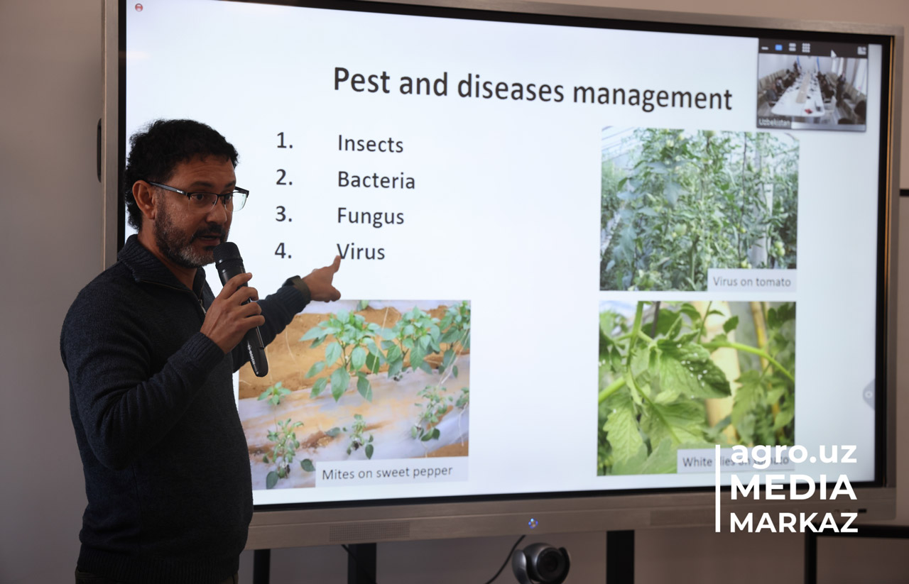 В Центре сельскохозяйственных знаний, инноваций и услуг AKIS стартовала серия тренингов по развитию тепличного производства и особенностям выращивания сельхозкультур в защищенном грунте с участием международного эксперта Мелвина Медины Наварро (Италия). Тренинг организован Представительством в Узбекистане Продовольственной и сельскохозяйственной организацией ООН (ФАО) при поддержке Министерства сельского хозяйства РУ в рамках проекта «Умное земледелие для будущего поколения».