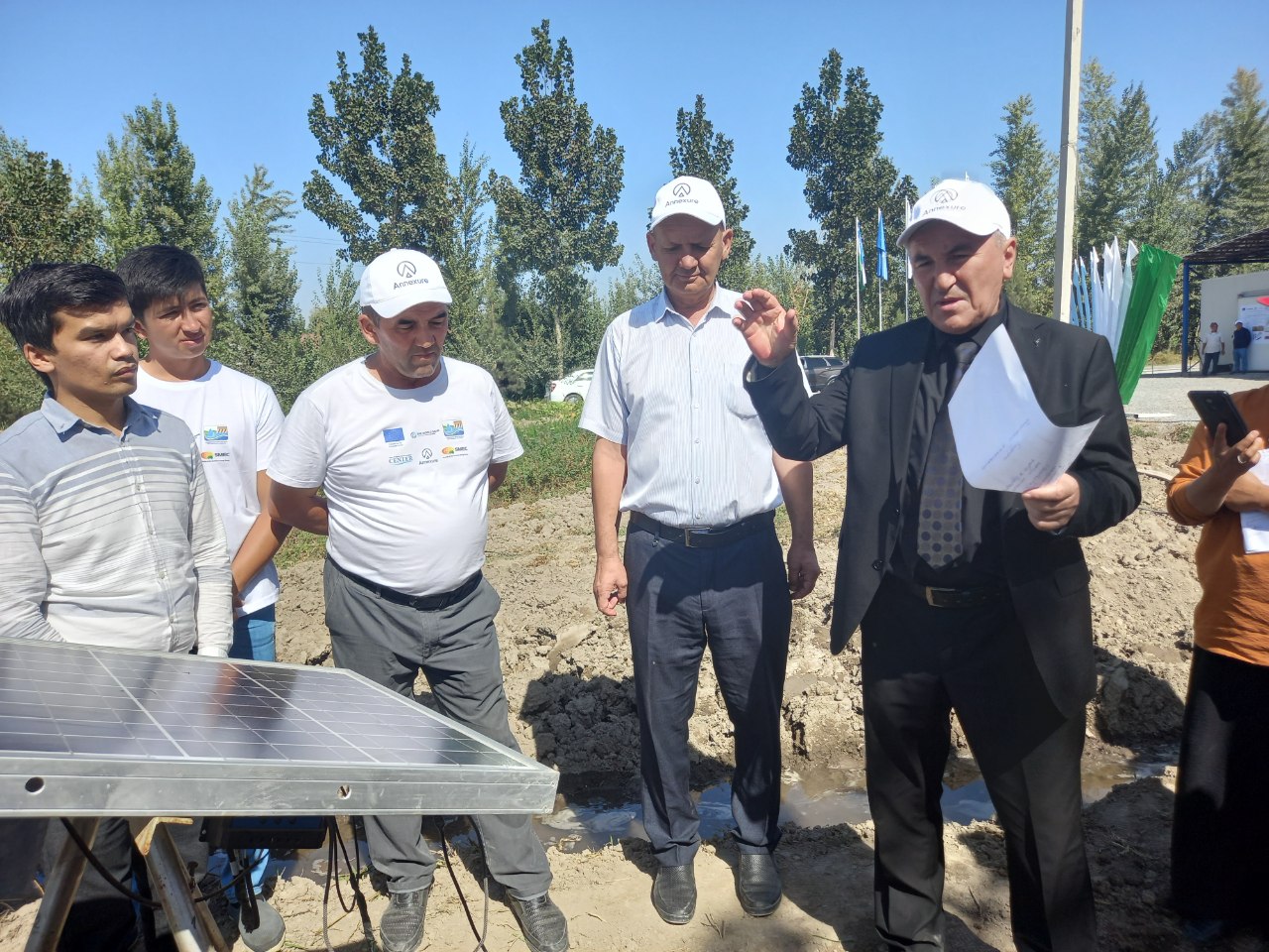 Press-turda Yevropa ittifoqi Wim RIEPMA tashkilotining O‘zbekistondagi dasturlar menejeri Alexander Zenebe boshchiligidagi delegatsiya, “Farg‘ona vodiysida suv resurslarni boshqarish. 2-bosqich” loyihasi koordinatorlari, Andijon ilmiy-tajriba stansiyasi olim va mutaxassislari, Andijon qishloq xo‘jaligi va agrotexnologiyalar instituti professor o‘qituvchi va talabalari hamda jurnalistlar ishtirok etdilar.