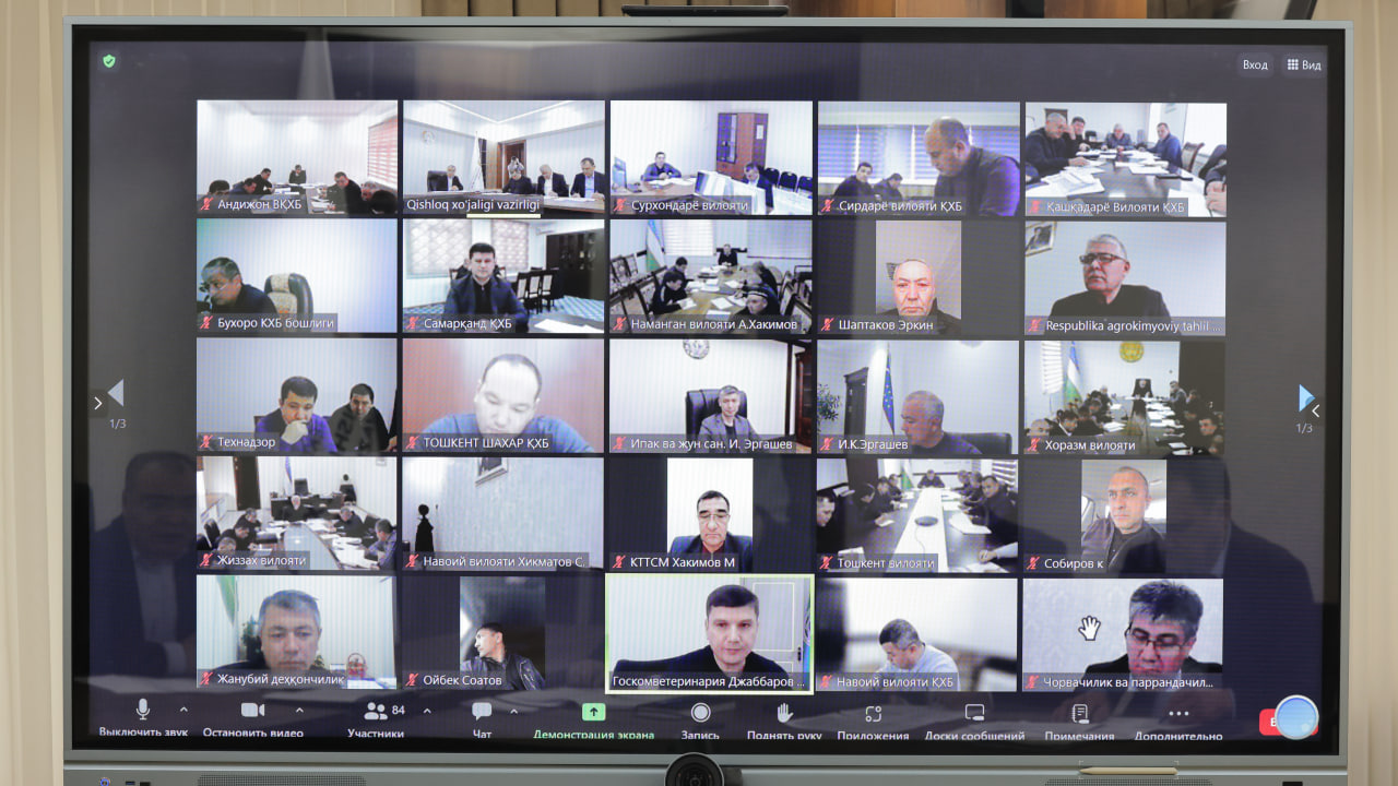 Videokonfrensaloqa shaklida tashkil etilgan yig‘ilishda vazir o‘rinbosarlari, departament va boshqarma boshliqlari, Qoraqalpog‘iston Respublikasi qishloq xo‘jaligi vazirligi, viloyat hokimlarining qishloq va suv xo‘jaligi masalalari bo‘yicha o‘rinbosarlari, viloyat hududiy boshqarma boshliqlari hamda tizim tashkiloti rahbarlari ishtirok etdi.